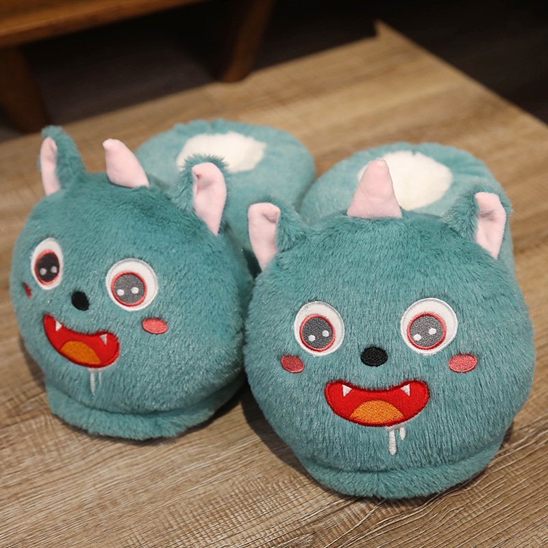 Cute Plush Cartoon Couple Cotton Slippers with Thick Soles